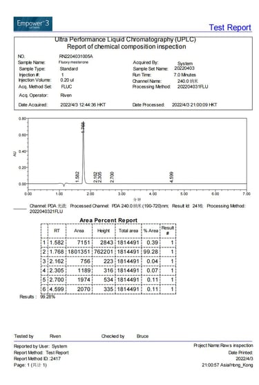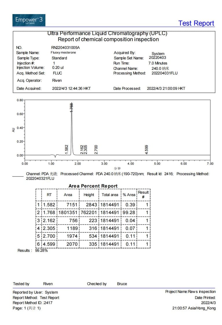 Fluoxymesterone, sold under the brand names Halotestin and Ultandren among others, is an androgen and anabolic steroid (AAS) medication which is used in the treatment of low testosterone levels in men, delayed puberty in boys, breast cancer in women, and anemia.[1] It is taken by mouth.