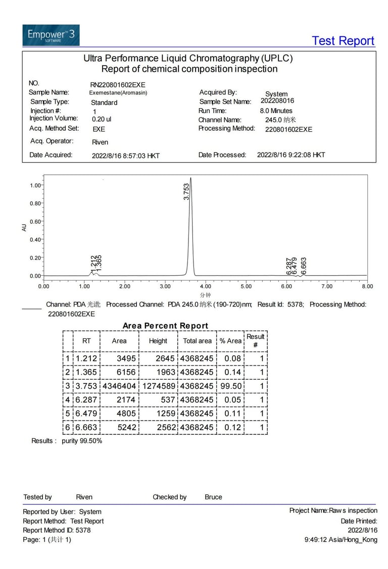 Current stock purity 99.50% tested on 2022/08/16