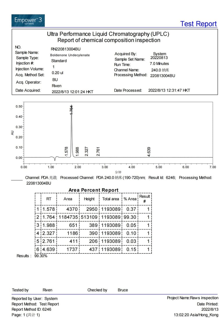 Boldenone undecylenate is a prodrug of boldenone, and hence is an agonist of the androgen receptor. Boldenone has strong anabolic effects and moderate androgenic effects. It also has low estrogenic activity and has little or no progestogenic activity. In relation to the fact that it is not 17α-alkylated, boldenone and boldenone undecylenate have little or no risk of hepatotoxicity.