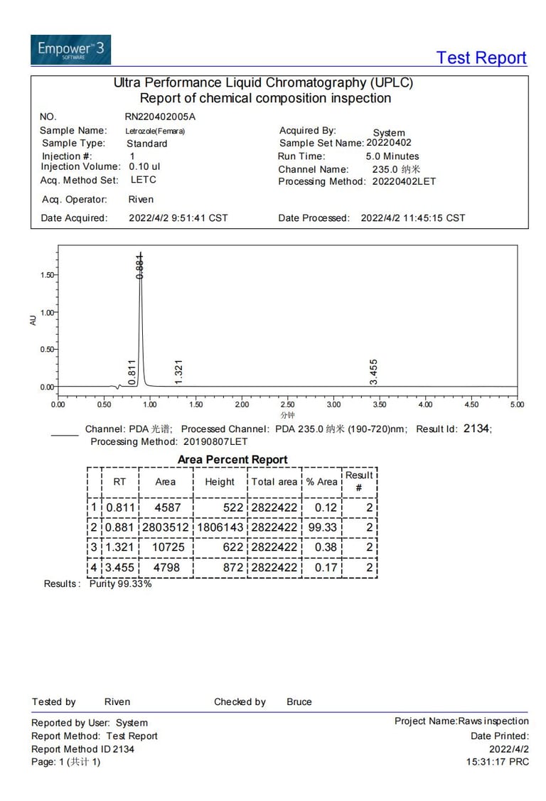 Current stock purity 99.33% tested on 2022/04/02