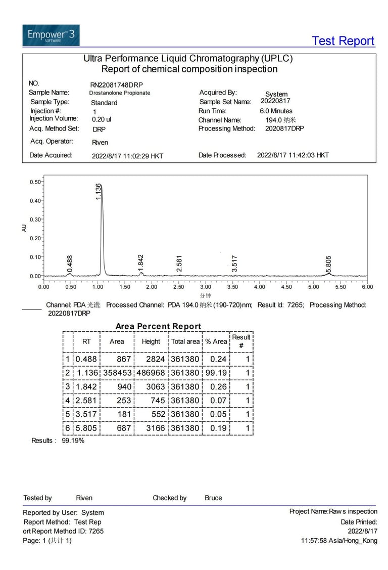 Current stock purity 99.19% tested on 2022/08/17