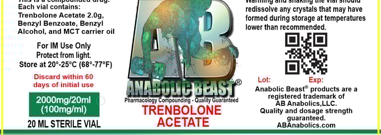Side effects of trenbolone acetate include symptoms of masculinization like acne, increased body hair growth, scalp hair loss, voice changes, and increased sexual desire. The drug is a synthetic androgen and anabolic steroid and hence is an agonist of the androgen receptor (AR), the biological target of androgens like testosterone and dihydrotestosterone (DHT). It has strong anabolic effects and highly androgenic effects, as well as potent progestogenic effects, and weak glucocorticoid effects. Trenbolone acetate is an androgen ester and a long-lasting prodrug of trenbolone in the body.