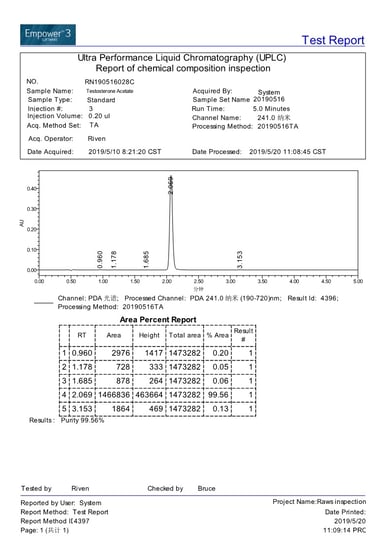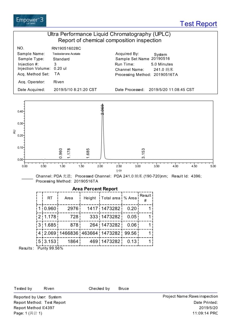 Current stock purity 99.56% tested on 2019/5/20