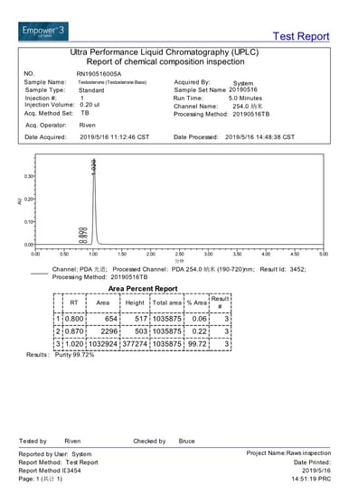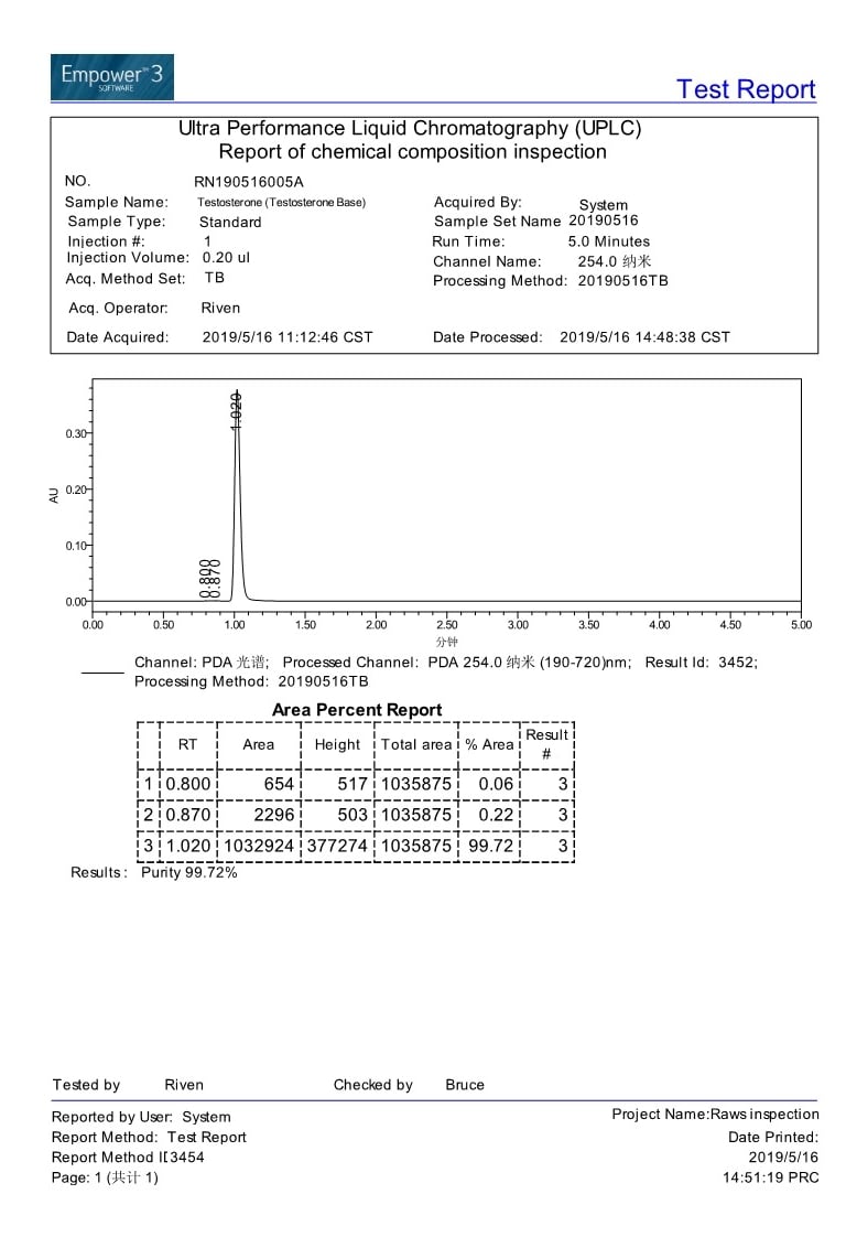 100mg Testosterone Suspension (un-esterified Testosterone) = 100mg Testosterone