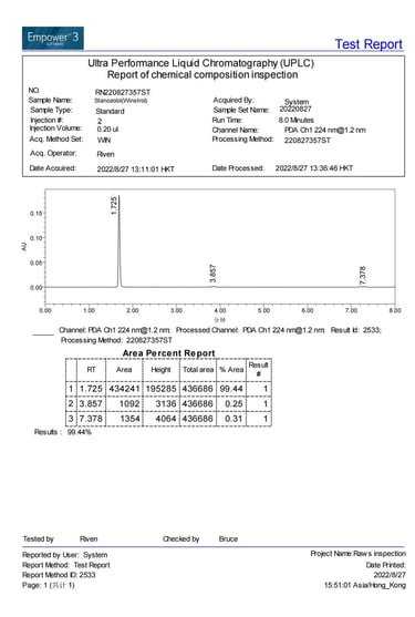 Current stock purity 99.44% tested on 2022/08/27